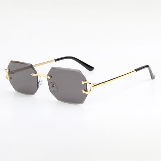 QAVALI | DIAMOND CUT RIMLESS HEXAGON SUNGLASSES IN METAL (IN 3 COLOURS)